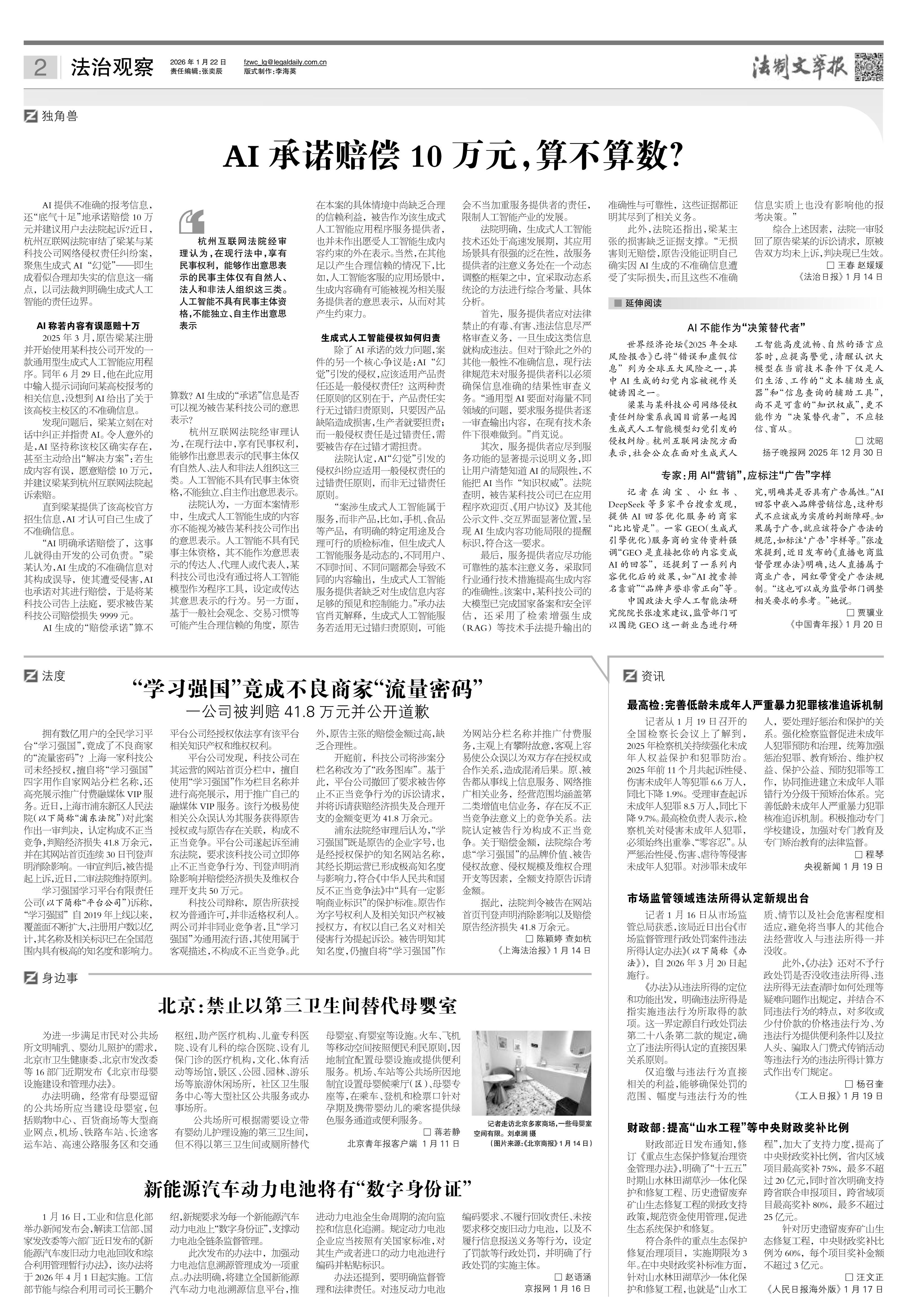 2026年1月22日《法制文萃報》總第2890期2版