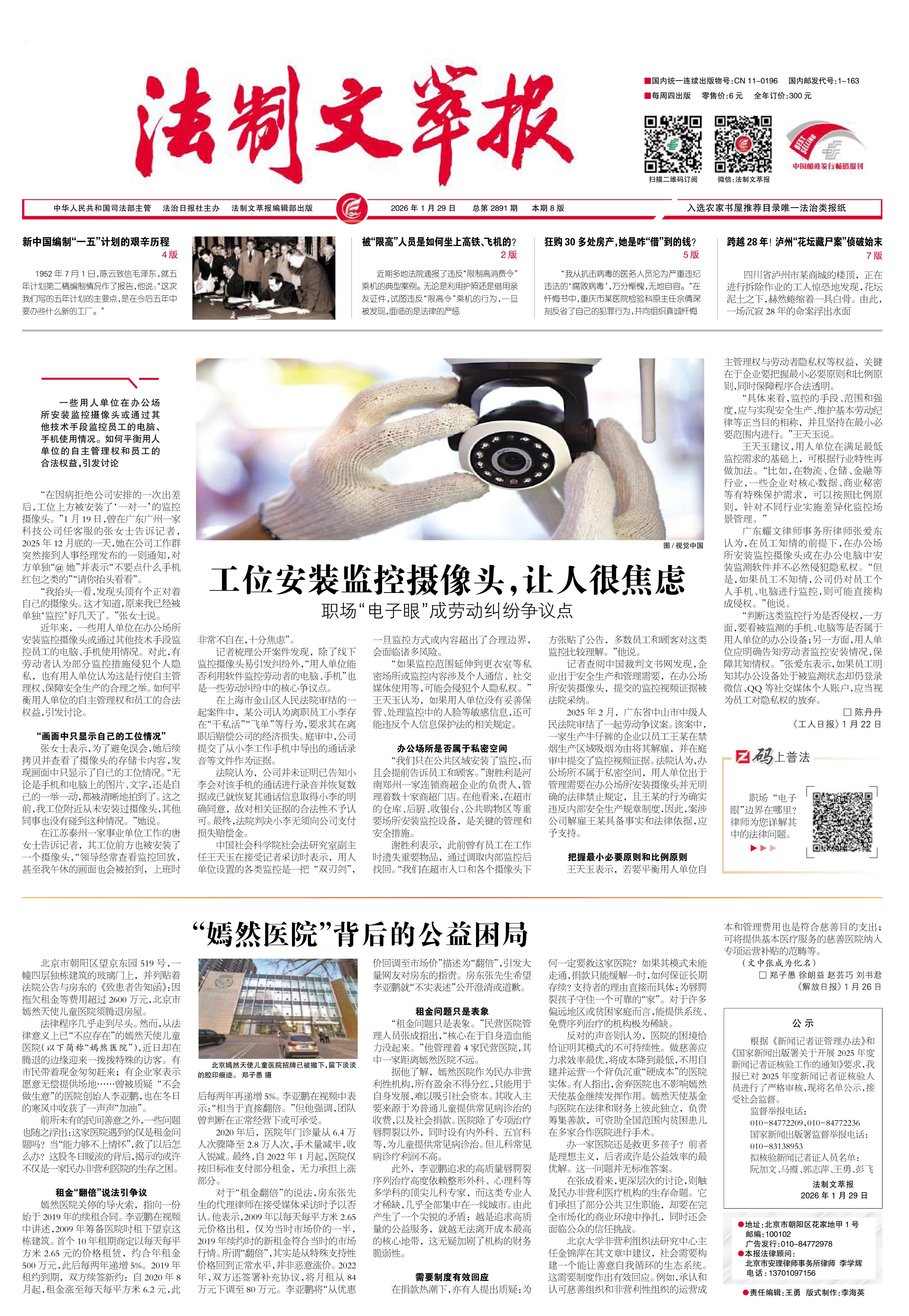 2026年1月29日《法制文萃報》總第2891期1版