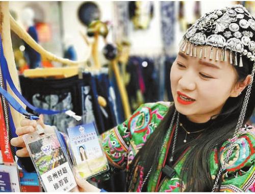 看好“村超”火爆流量的大學生劉勤蘭返鄉(xiāng)創(chuàng)業(yè)后,成為“村超”推薦官。圖為劉勤蘭向記者展示她的推薦官證。