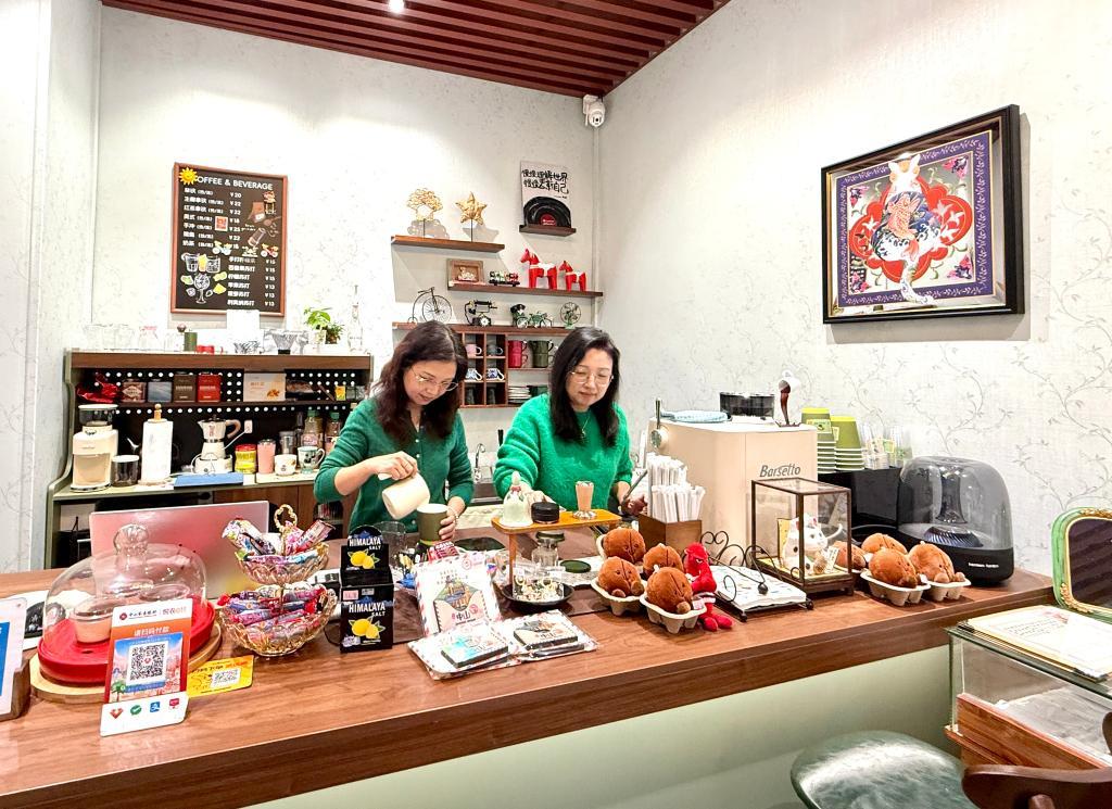 1月30日,甘嘉莉姐妹在店里制作咖啡。新華社記者 熊嘉藝 攝