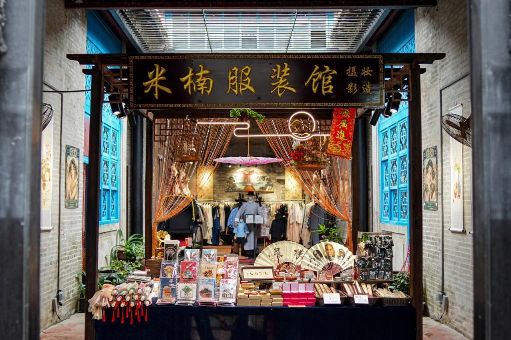 沿石板路往孫中山故居紀念館方向走,一座別致的青磚小院悄然出現在巷弄轉角。推門而入,時光仿佛慢了半拍:衣架上整齊懸掛著素雅的旗袍、樸素的學生裝,還有復刻的中山裝。