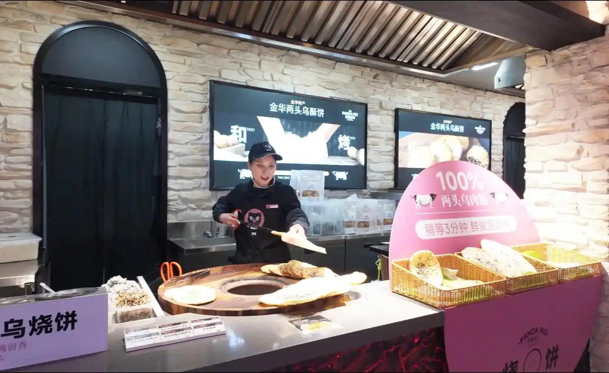 而在金華服務(wù)區(qū),這一理念更為具象。通過將農(nóng)產(chǎn)品與地域文化、旅游體驗(yàn)深度綁定,這里將簡單的“買特產(chǎn)”升級(jí)為沉浸式的“逛展銷”。金華服務(wù)區(qū)聚焦金華兩頭烏這一全國農(nóng)產(chǎn)品地理標(biāo)志,將整個(gè)空間打造成以“熊貓豬豬”為主題的“樂園”。