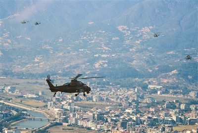 “計(jì)時(shí)起飛?!鄙衔?時(shí),隨著塔臺(tái)指揮員一聲令下,30余架多型號(hào)直升機(jī)從閩南某機(jī)場(chǎng)騰空而起,直奔預(yù)定空域,拉開訓(xùn)練帷幕。