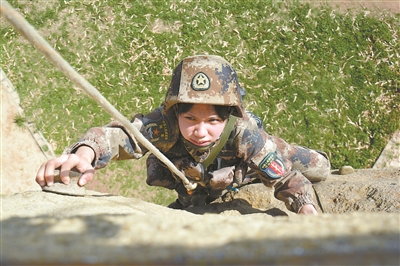 這個(gè)掌握通信、裝甲等多項(xiàng)技能的特戰(zhàn)女兵,沒(méi)有絲毫猶豫,麻利地攀登到了屋頂。目睹這一幕,這群男兵個(gè)個(gè)服氣了。