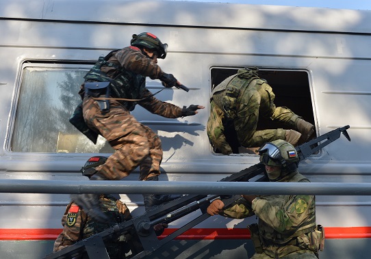 本次聯(lián)演為期11天,以聯(lián)合打擊恐怖主義為主題,按照“實(shí)戰(zhàn)化、對(duì)抗化、基地化”的思路,區(qū)分聯(lián)合基礎(chǔ)訓(xùn)練、戰(zhàn)術(shù)協(xié)同訓(xùn)練、綜合對(duì)抗演練3個(gè)階段,在俄羅斯新西伯利亞市近郊的“戈?duì)杻?nèi)”訓(xùn)練中心及周邊地域展開(kāi)4大類近30個(gè)課目的訓(xùn)練和交流。中國(guó)武警部隊(duì)和俄國(guó)民衛(wèi)隊(duì)分別派出獵鷹突擊隊(duì)和“葉爾馬克”獨(dú)立特種作戰(zhàn)部隊(duì)參加。