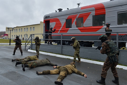 圖為開(kāi)展火車反劫持課目訓(xùn)練。