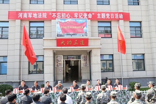 圖為鄭州軍事法院聯(lián)合地方法院在“大功三連”開展“不忘初心、牢記使命”主題黨日活動。