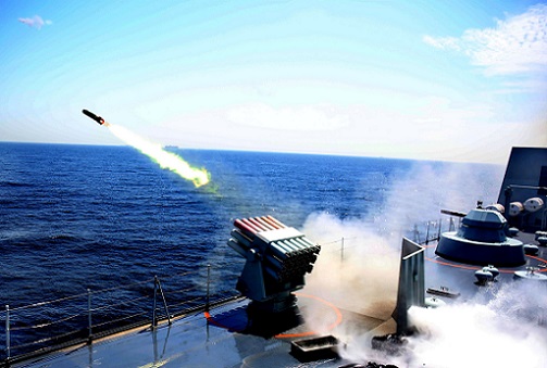 圖為沂蒙山艦釋放干擾彈。劉中濤 攝