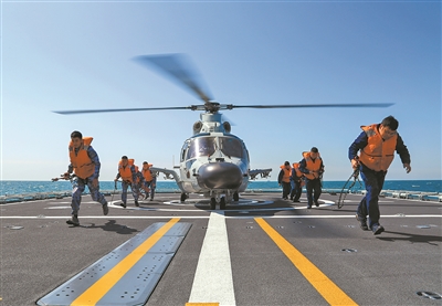 一路逐浪前行,一路“敵情”不斷。在接下來的訓(xùn)練中,戰(zhàn)斗警報接連響起,各艦密切協(xié)同,沉著應(yīng)對復(fù)雜多變的海上態(tài)勢。編隊時而轉(zhuǎn)換戰(zhàn)斗隊形,時而快速機(jī)動迂回,圍繞主副炮對海射擊、艦機(jī)協(xié)同、綜合攻防等多個課目展開演練。
