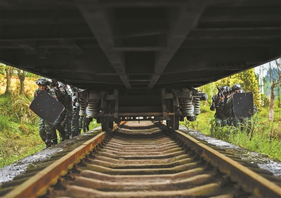 “狙擊手占領有利地形伺機狙殺目標,偵察組對現(xiàn)場實施嚴密監(jiān)控,各突擊組隱蔽接‘敵’做好攻擊準備!”在解救火車“被劫持人質”演練中,指揮員研判現(xiàn)場態(tài)勢后,周密部署兵力展開營救行動。一個個真難嚴實的訓練課目,考驗著特戰(zhàn)隊員的智能、體能、技能,檢驗著真打實備的訓練作風。
