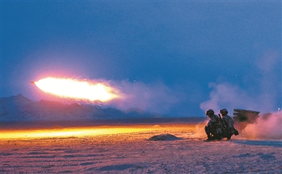 圖④:火箭炮分隊夜間實彈射擊訓練。