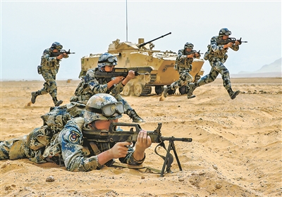 6月1日,空降兵某旅組織的一場實戰(zhàn)背景下空降機步營戰(zhàn)術(shù)演練,在西北大漠腹地激烈進行。面對復雜“敵情”,營指揮員沉著研判態(tài)勢,果斷調(diào)整兵力部署,指揮部隊采取靈活戰(zhàn)術(shù),向“敵”陣地發(fā)起突擊。