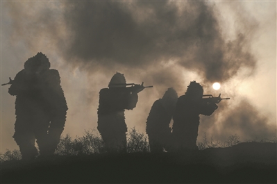 圖⑤:硝煙彌漫,官兵向目標(biāo)地域滲透?jìng)刹臁?/p>
