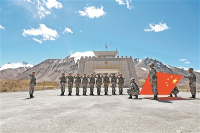 近日,新疆喀什軍分區(qū)紅其拉甫邊防連組織即將退役的士兵進(jìn)行告別國(guó)門(mén)儀式。圖為守邊戰(zhàn)士面向國(guó)旗莊嚴(yán)宣誓,他們紛紛表示,到地方后會(huì)續(xù)寫(xiě)軍人新風(fēng)采。李小龍攝
