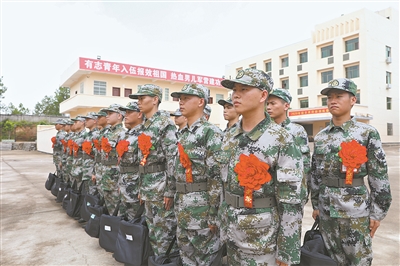 保家衛(wèi)國好男兒,綠色軍營獻青春。9月9日,江西省信豐縣新兵起運工作正式開始。為克服疫情帶來的影響,該縣組織85名新兵直接由封閉管理的役前訓(xùn)練基地出發(fā),奔赴祖國各地。圖為新兵們列隊做好出發(fā)準備。蘭善喜攝