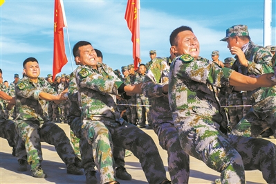 駐訓(xùn)期間,第82集團(tuán)軍某旅組織了“鐵軍杯”軍事體育運(yùn)動(dòng)會(huì),通過設(shè)置武裝越野、手榴彈投擲、擒拿格斗等比賽項(xiàng)目,激勵(lì)廣大官兵勇?lián)鷱?qiáng)軍重任、爭(zhēng)做時(shí)代尖兵。圖為該旅官兵正在進(jìn)行拔河比賽。