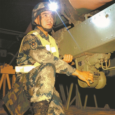 圖④:號(hào)手聚精會(huì)神操作裝備。