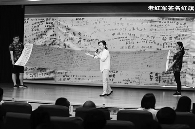 上海市國防教育協(xié)會主辦的首屆全民國防教育知識競賽暨紅色故事會在網(wǎng)絡(luò)平臺直播,圖為參賽選手飽含深情地講述紅軍故事。王曉旭攝