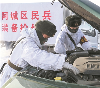 數(shù)九隆冬,天寒地凍。1月上旬,黑龍江省軍區(qū)采取“三級聯(lián)動、異地同步”方法,組織省軍區(qū)機關、軍分區(qū)(警備區(qū))、人武部同步開展國防動員演練,錘煉嚴寒條件下應急應戰(zhàn)本領。