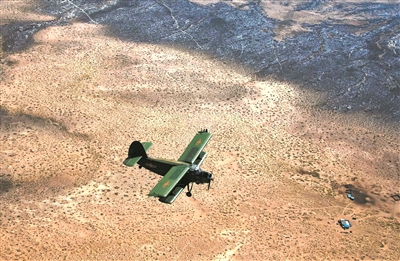 圖①:執(zhí)行飛播造林任務。
