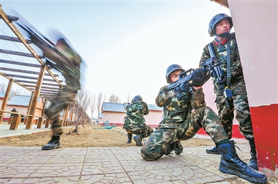 2月6日上午,武警第一機(jī)動(dòng)總隊(duì)某支隊(duì)營區(qū)突然響起急促的戰(zhàn)斗警報(bào)聲,一場(chǎng)反恐演練拉開戰(zhàn)幕,特戰(zhàn)隊(duì)員緊急集合奔向戰(zhàn)位。