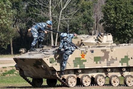 圖為空降兵戰(zhàn)車發(fā)射煙霧彈掩護(hù)后續(xù)打擊力量。