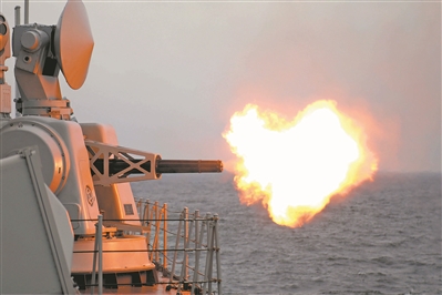“戰(zhàn)斗警報!”編隊剛剛抵達(dá)目標(biāo)海域,參訓(xùn)某艦率先接到主炮對海射擊命令,迅速進(jìn)行戰(zhàn)斗準(zhǔn)備?!伴_火!”指揮員果斷下達(dá)指令,炮彈呼嘯而出。隨后,編隊各艦集中火力,對海上目標(biāo)進(jìn)行打擊。海面硝煙未散,“敵機(jī)”又發(fā)起突襲,編隊迅速組成防空隊形展開抗擊。