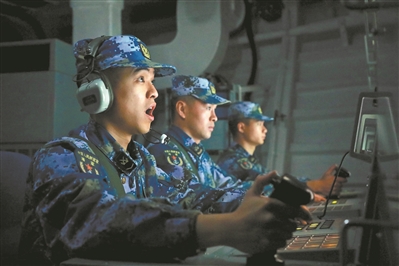 夜幕降臨,編隊轉(zhuǎn)入反潛訓(xùn)練?!胺轿弧痢粒嚯x××,發(fā)現(xiàn)金屬回音!”經(jīng)過仔細(xì)搜索,某艦發(fā)現(xiàn)“敵”潛艇,迅速通報編隊其他艦艇并對其實施打擊。