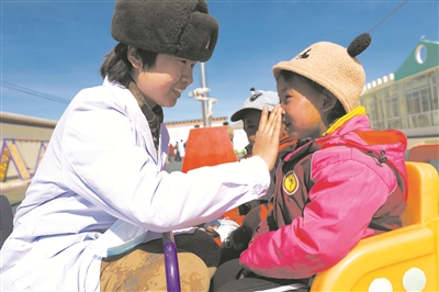 68歲的吉吉老人一早就等在家門口,迎接探望她的官兵。軍醫(yī)李文博為老人認真檢查了身體,并留下所需藥品。吉吉老人感動不已,一直用手勢表達感謝。