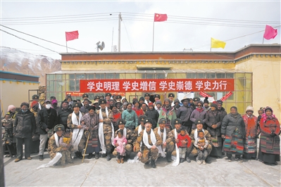“紅軍長征經(jīng)過藏區(qū)時,藏族同胞主動把青稞、鹽和紅糖送給紅軍,并冒著生命危險運送糧食和物資……”在軍民學(xué)黨史主題活動現(xiàn)場,教導(dǎo)員王文卿講述的故事,讓官兵和村民深受感動。