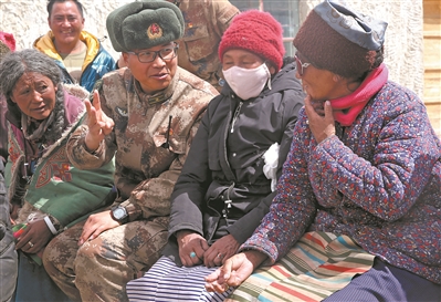 4月的喀喇昆侖腹地,寒意散去,春的氣息悄然來臨。這天,正在雪域高原駐訓(xùn)的新疆軍區(qū)某紅軍團官兵來到日土村,開展“愛民助民進藏家”活動,為藏族同胞宣講黨史、巡醫(yī)送藥、幫困解難。
