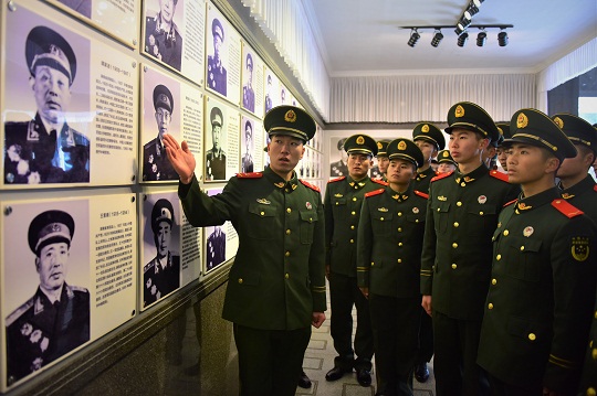 圖為武警井岡山中隊(duì)紅色講解員在北山烈士陵園展館,為新兵介紹從井岡山走出的開(kāi)國(guó)將帥。 萬(wàn)立恒 攝