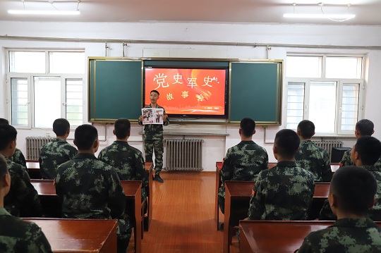 站在講臺(tái)上演講的叫崔浩天,是武警黑龍江總隊(duì)齊齊哈爾支隊(duì)剛?cè)胛榈男卤?。這個(gè)演講是支隊(duì)開(kāi)展的“黨史軍史故事會(huì)”系列活動(dòng)。