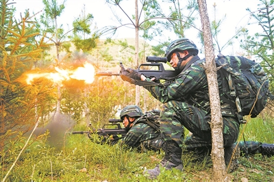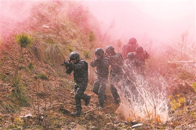 鐵拳出擊,攻勢凌厲。官兵爬陡坡、穿密林、涉水溝,將包圍圈不斷縮小?!氨┛址肿印北粐谝挥绾?,突然實(shí)施火力反抗,企圖乘亂逃竄。按照行動預(yù)案,官兵迅速應(yīng)對,從不同方向展開圍堵,最終將“暴恐分子”悉數(shù)抓捕。