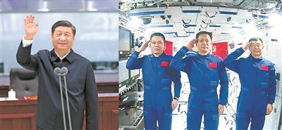 習近平:看到你們狀態(tài)很好、工作順利,大家都很高興。建造空間站,是中國航天事業(yè)的重要里程碑,將為人類和平利用太空作出開拓性貢獻。你們是新時代中國航天事業(yè)無數(shù)奮斗者、攀登者的代表。希望你們密切配合,圓滿完成后續(xù)任務!祝你們在太空工作生活順利,我們在北京等候各位凱旋!