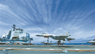 2018年4月12日,遼寧艦航母編隊(duì)參加南海大閱兵之后,隨即奔赴遠(yuǎn)海,開展實(shí)兵對抗演練。圖為演練中殲-15艦載戰(zhàn)斗機(jī)放下尾鉤準(zhǔn)備著艦。本報(bào)記者 張雷 攝
