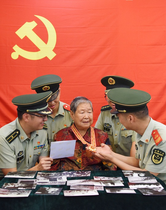 聽了渡江英雄馬毛姐的事跡后,官兵們紛紛給馬奶奶豎起大拇指。中士黨員王遠征說:“學習馬毛姐就是學習她不怕犧牲的戰(zhàn)斗精神,我們青年一代要時刻牢記初心使命,繼承發(fā)揚渡江精神,苦練殺敵本領,立足崗位建功立業(yè)?!?/p>