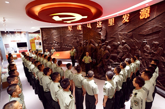 陸軍第83集團(tuán)軍某旅“紅一連”,這個(gè)從秋收起義的戰(zhàn)火硝煙中走來的連隊(duì),在“三灣改編”時(shí),由毛澤東同志親自組織發(fā)展6名新黨員,建立了全軍第一個(gè)連隊(duì)黨支部,開創(chuàng)“支部建在連上”的先河,被譽(yù)為“軍魂發(fā)源的地方”。