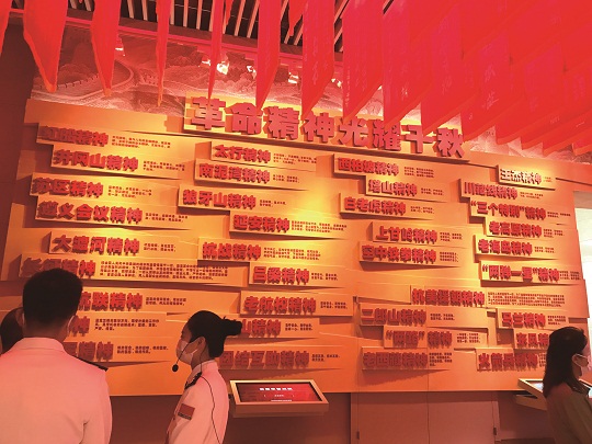 圖為講解員在革命精神展墻前為參觀者講解。本報(bào)記者 廉穎婷 攝