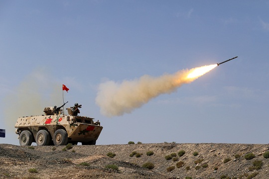 圖為中國參賽隊員在戰(zhàn)車上發(fā)射便攜式防空導彈。張嘉成 攝