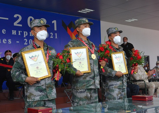 至此,“蘇沃洛夫突擊”項目單車賽3輪12個車組的比賽全部完成,中國隊以單車賽總成績47分25秒72排名第一,打破賽事記錄,俄羅斯隊、白俄羅斯隊位列第二、三名。中國參賽隊第3車組、第1車組、第2車組三個車組包攬“優(yōu)勝車組”前三名,中國參賽隊車長張洋、炮長田志龍、駕駛員李夏穎,分別被評為“最佳車長”“最佳炮長”“最佳駕駛員”。