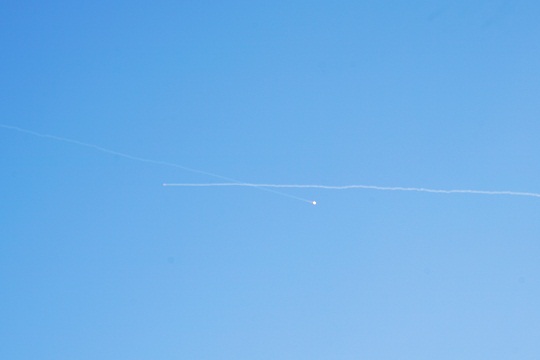圖為導(dǎo)彈與高速靶彈空中交會。郭中正 攝