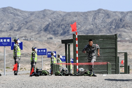圖為中國參賽隊員穿過四百米障礙。張永進(jìn) 攝