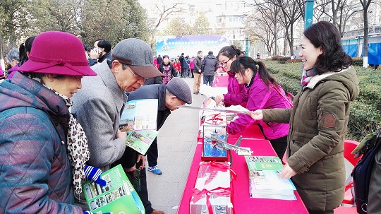 圖為張莉參加廣場宣傳活動推介南京國防園。