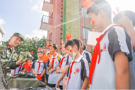 在營區(qū)“靶場”,各式槍械裝備整齊地擺在展示臺上。在教官帶領(lǐng)下,學生們很快掌握了武器使用基本原理和不同武器的使用效果和應用場景。活動最后,學生和官兵們揮舞著國旗,大聲齊唱《我和我的祖國》。