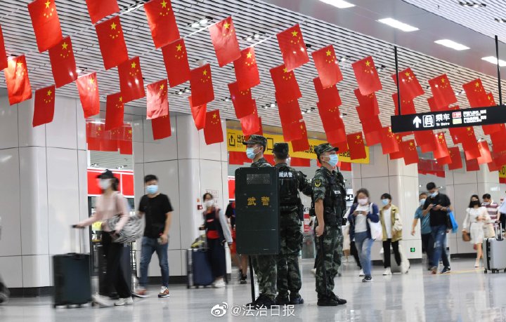 今天是國慶節(jié),為確保群眾出行安全,武警安徽總隊合肥支隊官兵在合肥南站巡邏執(zhí)勤。據(jù)了解,國慶節(jié)期間,武警合肥支隊廣大官兵堅守執(zhí)勤一線,守護一方安寧,在各自的工作崗位上為祖國母親慶生。