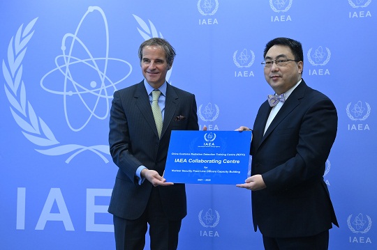 圖為中國國家原子能機(jī)構(gòu)與國際原子能機(jī)構(gòu)共同見證協(xié)作中心協(xié)議簽署。國家原子能機(jī)構(gòu)供圖