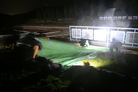 處于海南島最東端的銅鼓嶺測控點(diǎn),三面環(huán)山、風(fēng)大浪高,地勢的原因讓這里的防臺形勢更加嚴(yán)峻。曾經(jīng),2014年臺風(fēng)“威馬遜”登陸時,中心風(fēng)力達(dá)17級。為拯救光學(xué)實(shí)況記錄設(shè)備,測控點(diǎn)成立突擊小分隊(duì),在狂風(fēng)暴雨中用繩索相互捆綁,成功保住了測控設(shè)備。這次臺風(fēng)過境,點(diǎn)號航天工作者更是未雨綢繆,提前開展臺風(fēng)形勢研判,實(shí)地查看風(fēng)險(xiǎn)隱患和防范重點(diǎn)難點(diǎn),緊前加固設(shè)備天線罩,加蓋防雨布層層保護(hù)核心部位,力爭設(shè)備設(shè)施零損失。12日晚,連夜的暴雨導(dǎo)致測控點(diǎn)綠化斜坡松動,應(yīng)急分隊(duì)聞令而動,冒著大雨全力疏通泄洪渠道,壓緊壓實(shí)斜坡,及時避免了可能帶來的斜坡塌方和建筑損傷。