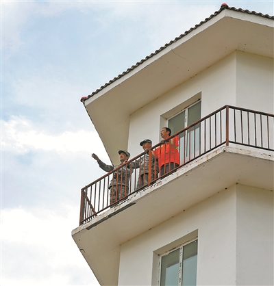 張連?。ㄗ笠唬┰诓t望塔上觀察森林防火情況。