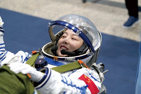 圖為航天員王亞平參加人船聯(lián)試??追街?攝